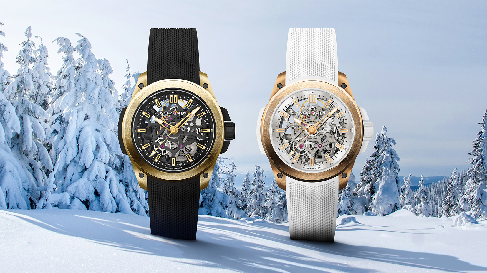 Die gelbgoldene Edition wird vom skelettierten Norqain Kaliber NB08S in Ruthenium Black angetrieben, während in der rotgoldenen Edition das Norqain Kaliber N08S schlägt – ein chronometerzertifiziertes Werk, sichtbar durch den Saphirglasboden.